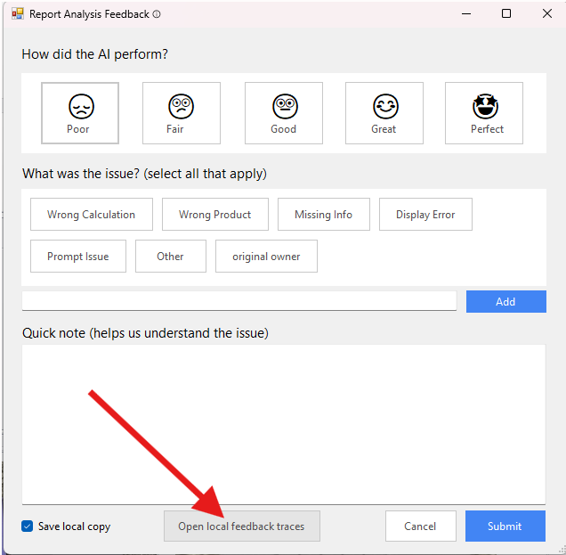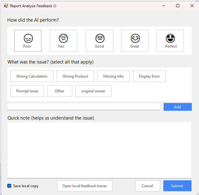 - ❌ Submit feedback for issues outside the prompt’s scope